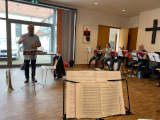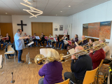 Am 15. März 2025 fanden in Mainz-Finthen die von den Bezirken Rheinhessen und Südnassau organisierten Tagesworkshops für fortgeschrittene Bläser:innen und Nachwuchs unter der musikalischen Leitung von Traugott Baur und Ludwig Dilchert statt. Von den 24 Teilnehmenden wurden nach einem Kennenlernen bei Kaffee, Tee und Gebäck verschiedene Stücke aus dem Rheinischen Bläserheft 2025 „Musik aus Nordamerika“ erarbeitet.